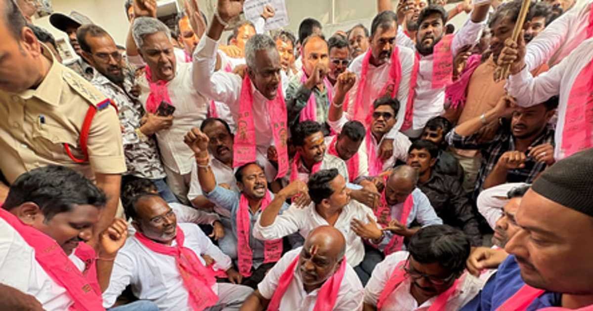 During the protest, BRS leaders tried to burn an effigy of Tejasvi Surya. However, police intervened and stopped the attempt. This led to a brief confrontation at the protest site.