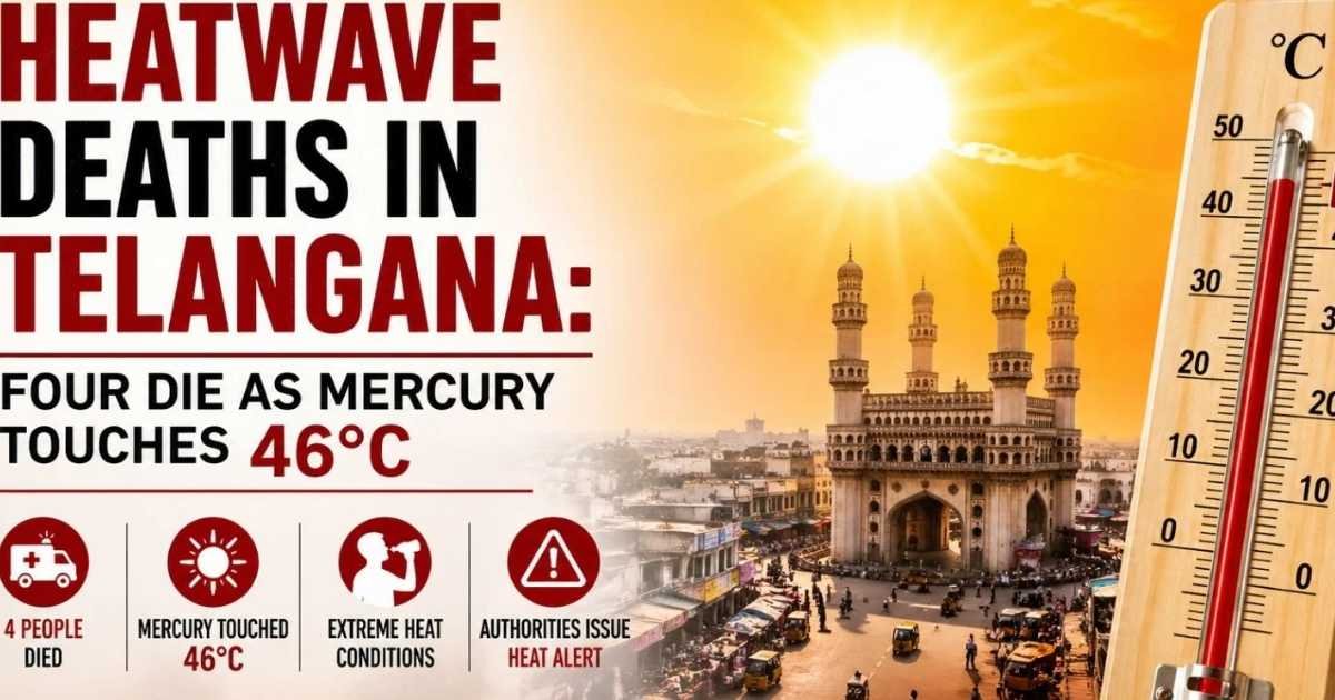 Hyderabad: Heatwave deaths were reported in Telangana after temperatures touched 46°C, with four people losing their lives amid extreme weather conditions.