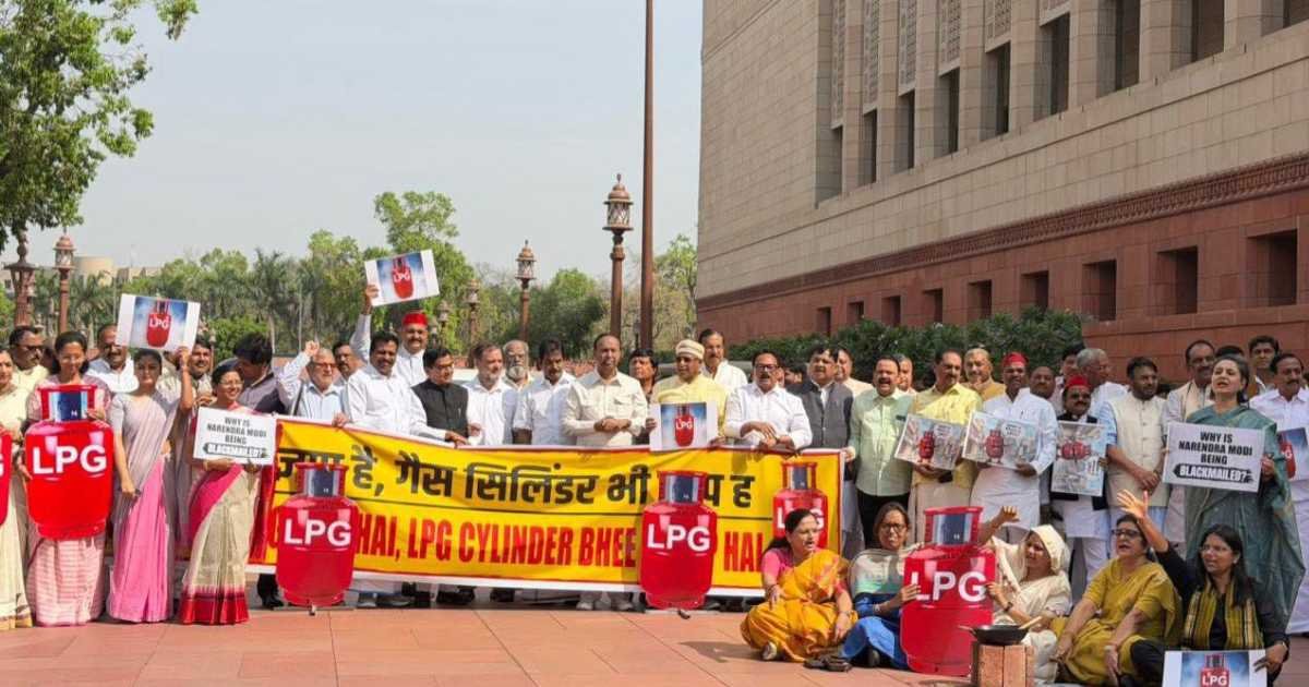 Hyderabad: MPs of the INDIA alliance staged a protest over LPG price rise and cylinder shortages near Makar Dwar at Parliament, accusing the Centre of ignoring the issue.